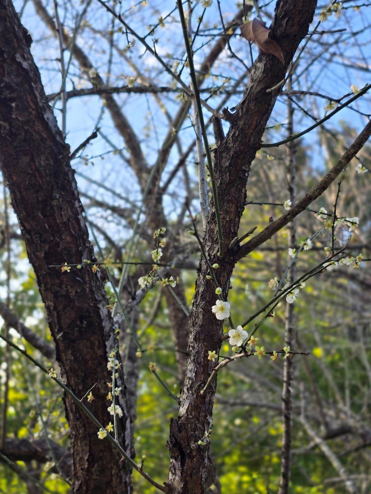 歲序入冬,北風未至,南港公園已先浮起一縷暗香。循著湖畔石徑前行,只見梅樹疏枝橫斜,蓓蕾如珠,悄然綻成冰玉;素瓣映著微瀾,仿佛白瓷浮水,靜靜托起一座城市的清寒。園內有十一株梅花,在寒氣中撩開帷幕,為灰褐的冬天點染出一抹高潔。梅之開花,自非倏然。回溯至前歲夏末,長日漸短,梅樹感知光溫遞變,遂於枝梢深處啟動花芽分化。初秋之際,花芽成形,卻不急於吐露,反而步入休眠,靜候霜訊。此段蟄伏,是植物以靜制動的智慧:避寒、藏養、沉潛,直至天地澄澈、氣薄如刃,才肯一夕綻裂,暗香浮動。於是乎,冬日愈深,梅愈精神,恰如古人所言:「雪卻輸梅一段香」。