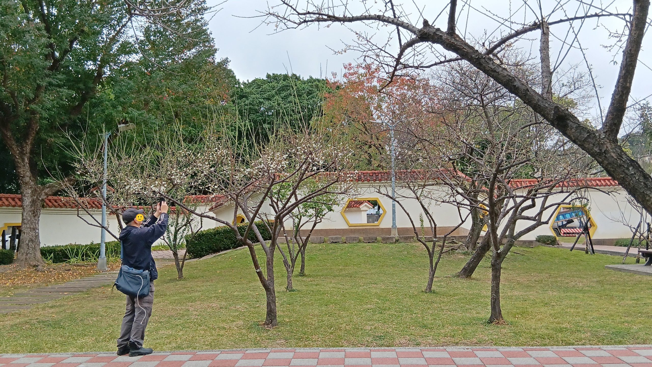 鄰近捷運站的志成公園則以江南庭園風格結合開放式綠地設計,巧妙配置中國庭園式隔牆,牆面層層相映,營造出內斂而富有層次的景觀空間。近期梅花陸續綻放,已進入最佳觀賞期。梅樹沿園區主要動線自然排列,花開時節,枝頭繁花與四周的綠意相互交織,形成一幅豐富且層次分明的景觀畫卷。園內的綠蔭盎然,設有小巧的水池與曲折的環牆,水景與植栽相呼應,呈現典雅細緻的庭園風貌。此處不僅是賞梅的好去處,更是鄰里居民日常休憩、散步、親近自然的重要場域,讓人於冬日裡感受到溫暖與寧靜。