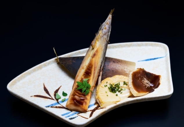 湯田川孟宗竹料理的特點是孟宗竹沒有澀味,而且甘甜而柔軟。來自出羽三山的融雪水滲入土壤,在寒冷中慢慢成長的筍被挖出後,盡快加熱。「朝掘」指的是從收穫到幾小時內的東西。九兵衛旅館第11代當家大滝研一郎先生在這個季節會親自進入竹林,挑選好的竹筍,盡快烹飪。這就是湯田川孟宗的味覺,也是吸引人們來到這家旅館的魅力之一。用酒粕和味噌製作的孟宗汁,柔軟無澀味,散發著甘甜的樸素味道。天婦羅、土佐醋拌菜、姬皮沙拉——越是接觸烹飪方法,越能感受到孟宗這種食材,以及湯田川的特別款待。