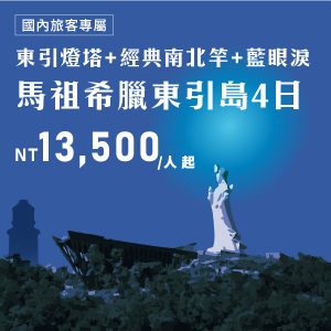 【國內旅客】馬祖希臘東引島4日~白色夜明珠-東引燈塔、經典南北竿全覽、夜尋藍眼淚奇景
