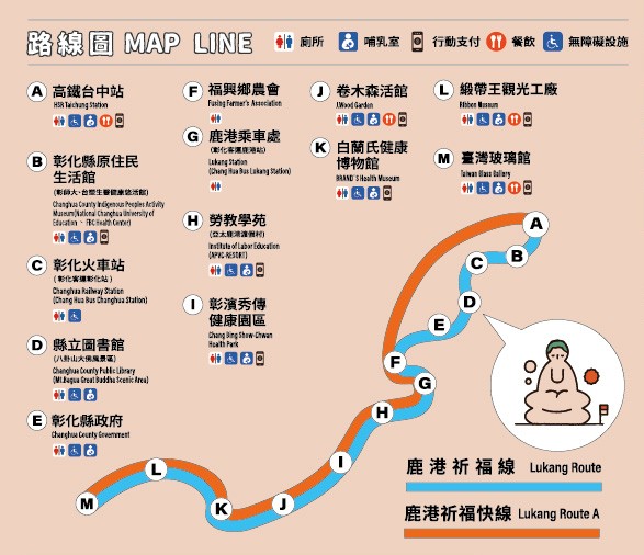 台灣好行-鹿港祈福線,帶您穿梭彰化及鹿港。在彰化,遇見大佛、悠遊慢食;到鹿港,感受往昔「千帆入港」的繁榮景象,走過老街、細品古鎮文化;彰濱的觀光工廠體驗,樂趣無窮。鹿港祈福線帶您玩得精彩、遊得盡興!