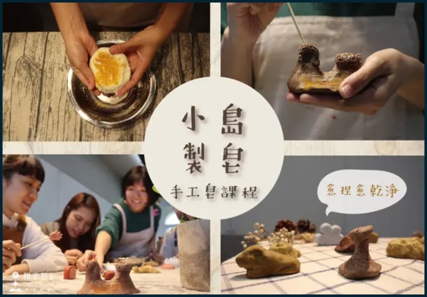 在小島上的安心手作體驗,使用最簡單的材料,從塑型到細刻,製作的過程中,透過捏捏捏釋放焦慮情緒,每一個步驟都是療癒自己、洗滌自己的心靈。從製作到皂品使用全程零炭排。